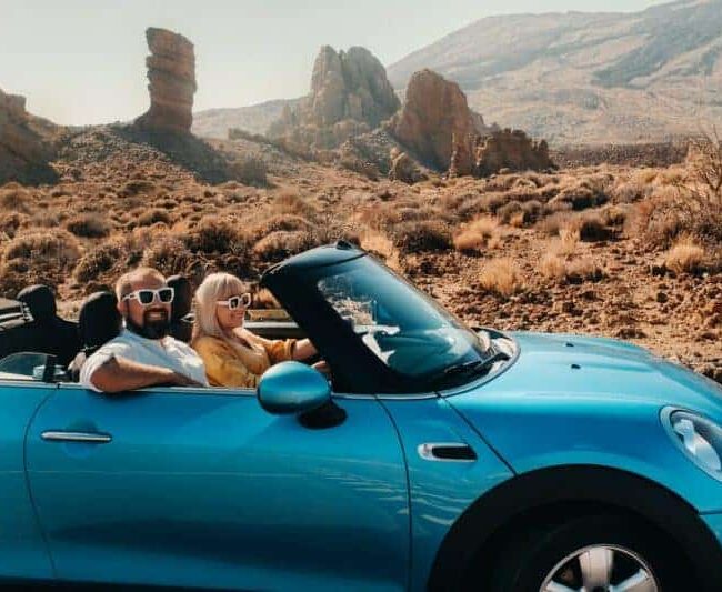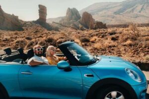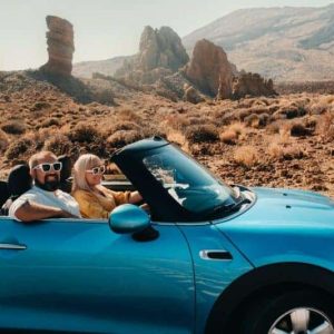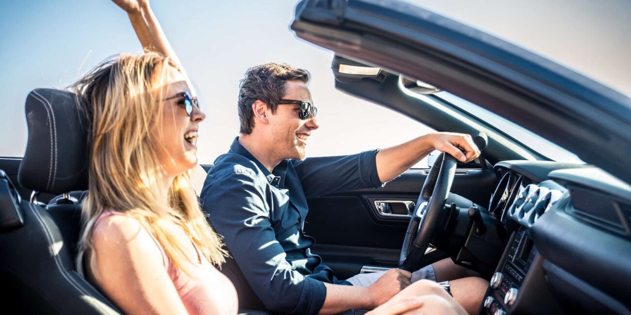 a-woman-and-a-man-wearing-glasses-in-a-convertible-car-on-a-trip-to-the-islan...
